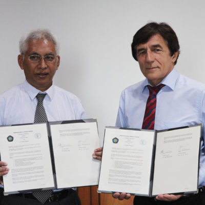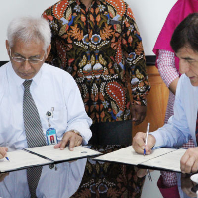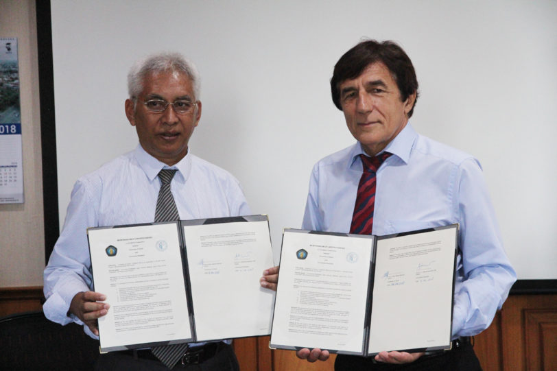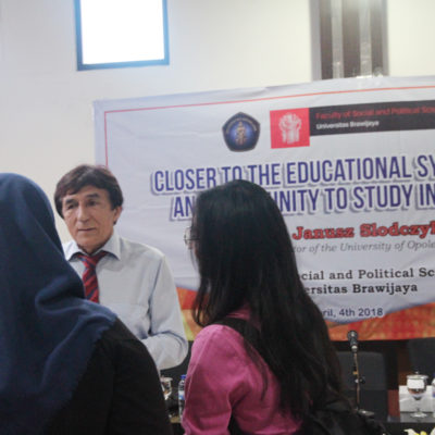 Visit to the Brawijaya University in Malang (Indonesia): meetings with students and signing a cooperation agreement between Bravijaya University and University of Opole (Rector prof. Mohammad Birsi and Deputy Rector prof. Janusz Słodczyk)- April 2018 .